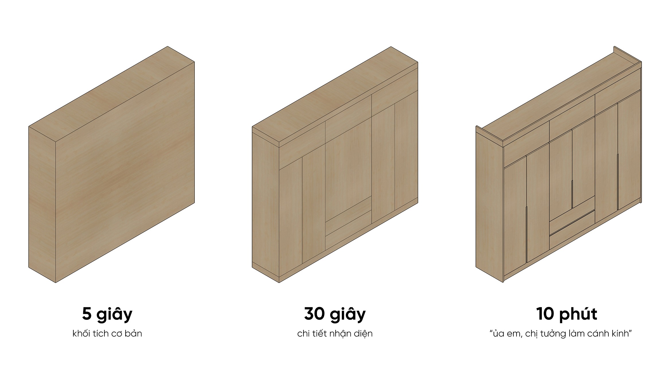 - Tôi biết nhiều đồng nghiệp khi concept phương án sẽ vẽ thẳng đến các bước gần cuối cùng luôn. Thường là vì kỹ tính, cầu toàn, rối loạn ocd, sếp bắt vẽ, muốn chứng minh năng lực và tâm huyết với đối tác, hoặc chỉ đơn giản là “ôi giào vẽ luôn đi có mấy phút là xong”. Nhưng nhìn chung đều tạo ra rủi ro lãng phí thời gian. Nhất là với các khách họ Ủa.