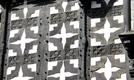 Phương pháp xây dựng với hệ thống các thanh gỗ lộ ra ngoài này được gọi là “half-timbering”. Các thanh gỗ thường được sơn tối màu, nằm trên nền tường sơn hoặc làm bằng gạch. Sự kết hợp đó tạo nên các hoạ tiết rất độc đáo và đặc trưng cho kiến trúc Tudor.