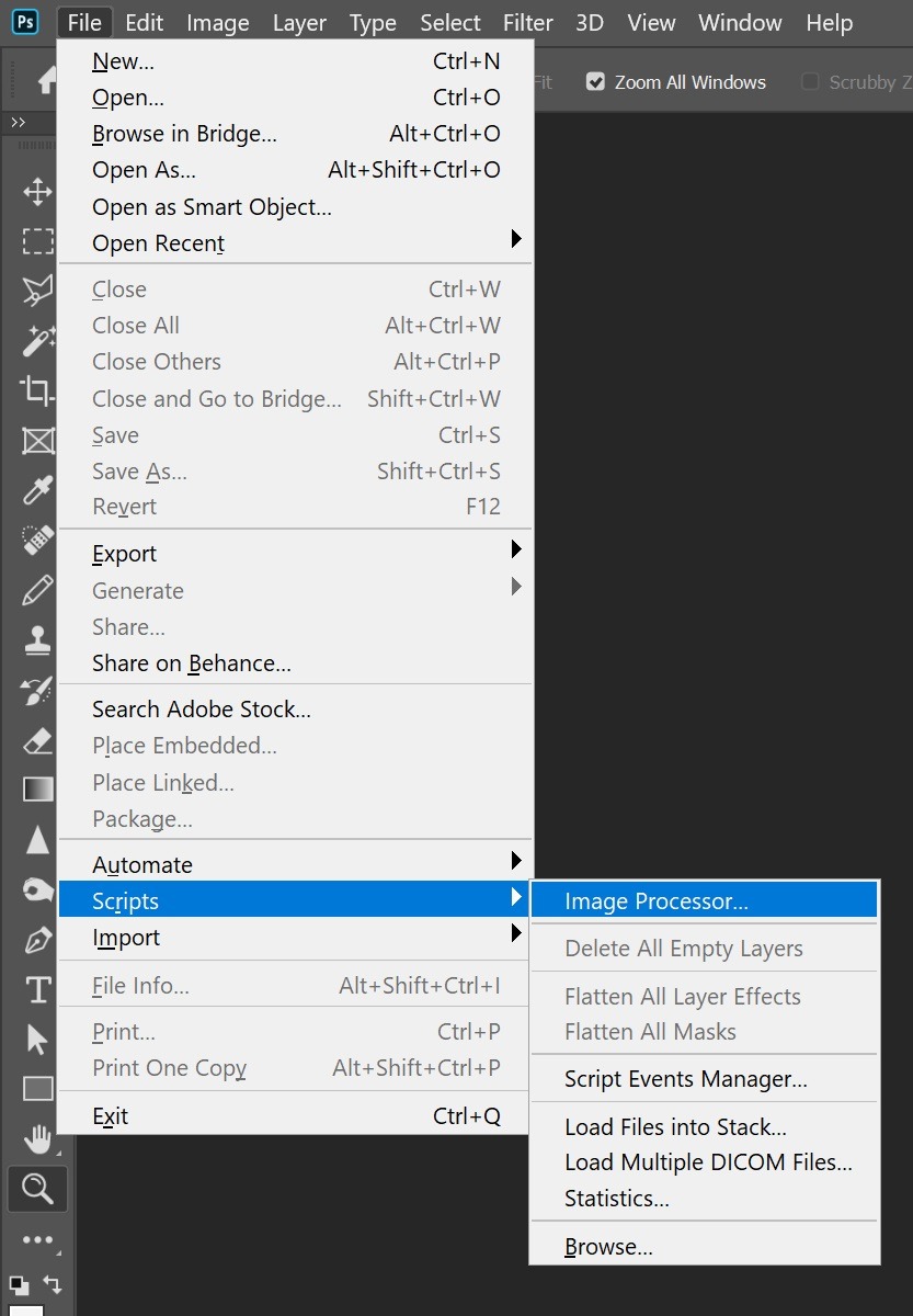 Nếu các texture của bạn chưa ở định dạng này, bạn nên convert hàng loạt bằng Photoshop bằng cách sau: