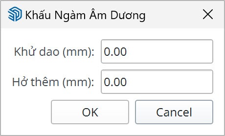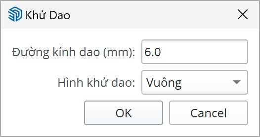 Thêm khử dao cho các góc vuông lõm. Thường được sử dụng khi khấu giằng ngang. Tương tự các tính năng trước, nhấn TAB để bật bảng cài đặt thông số.