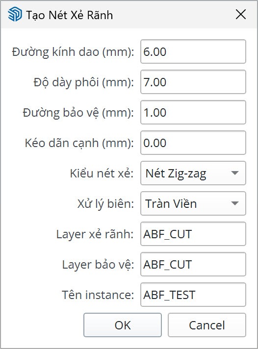 - Nếu sử dụng ABF làm công cụ chính để gắn nhãn và nesting, bạn bắt buộc phải để tên Instance có tiền tố là ABF_, nếu không phần mềm sẽ không nhận đường xẻ rãnh khi nesting. Layer tùy thuộc vào cài đặt của bạn.