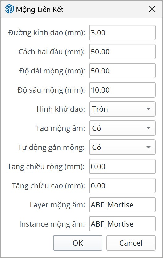 - Bạn nên để Tạo mộng âm = Có và Tự động gắn mộng = Có để nesting được thuận lợi hơn.