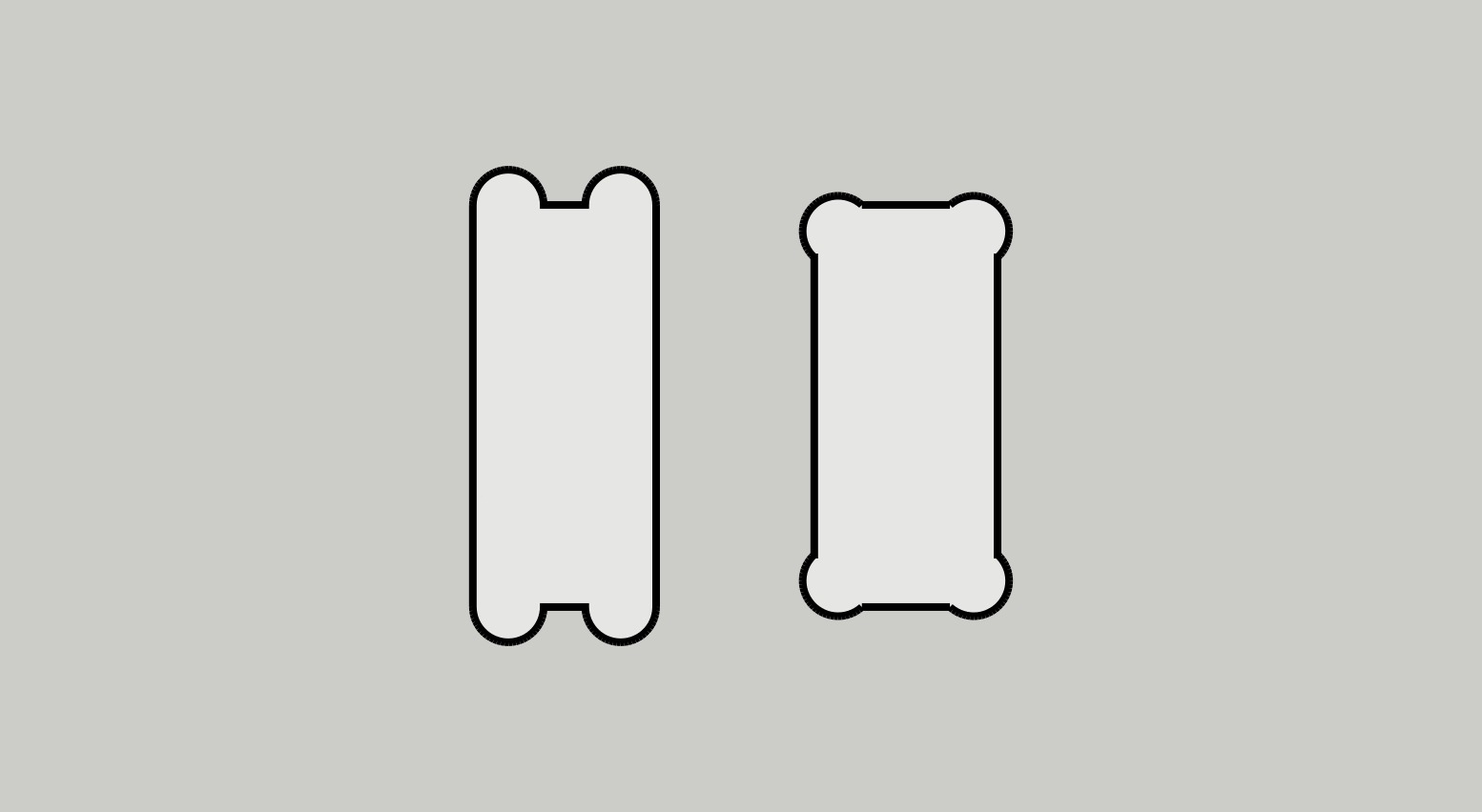 Minh họa hình mộng âm của Board Tools (trái) và mộng xương chó (phải).