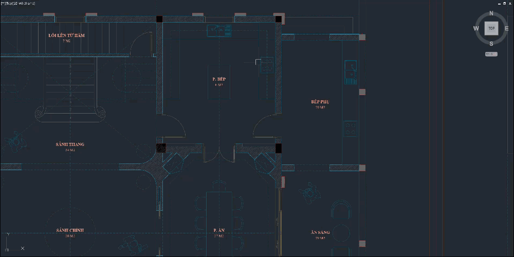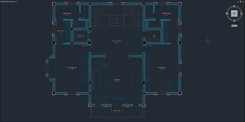 Xoay viewport của AutoCAD 90 độ thuận chiều kim đồng hồ (R1) hoặc ngược chiều kim đồng hồ (R2). RR để reset về mặc định.